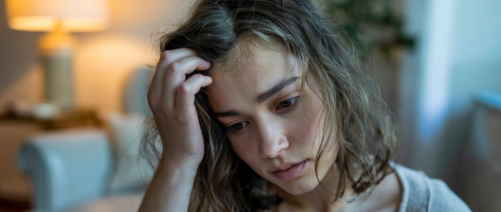 La caspa severa es una descamación intensa del cuero cabelludo, con placas o escamas visibles, acompañada muchas veces de picor fuerte, enrojecimiento y sensación de tirantez.